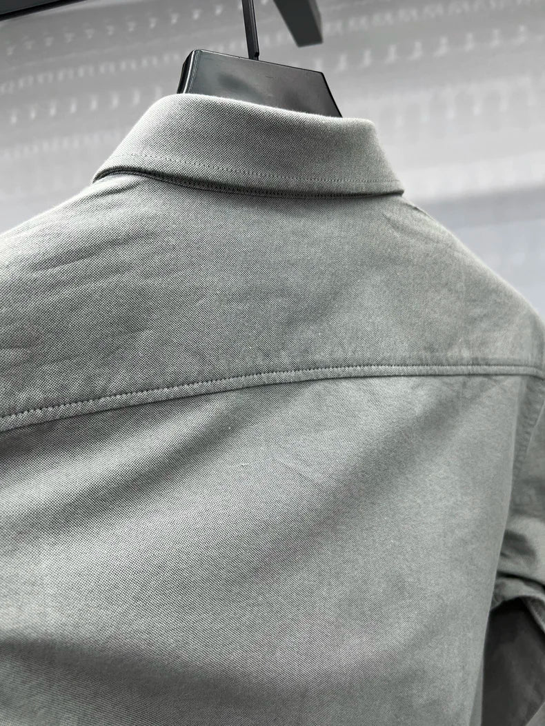 Camisa de manga larga en 100% algodón Oxford hilado en anillos, cuello cuadrado.