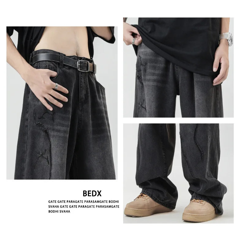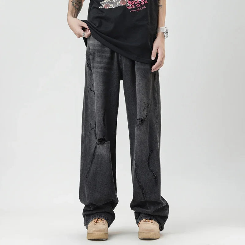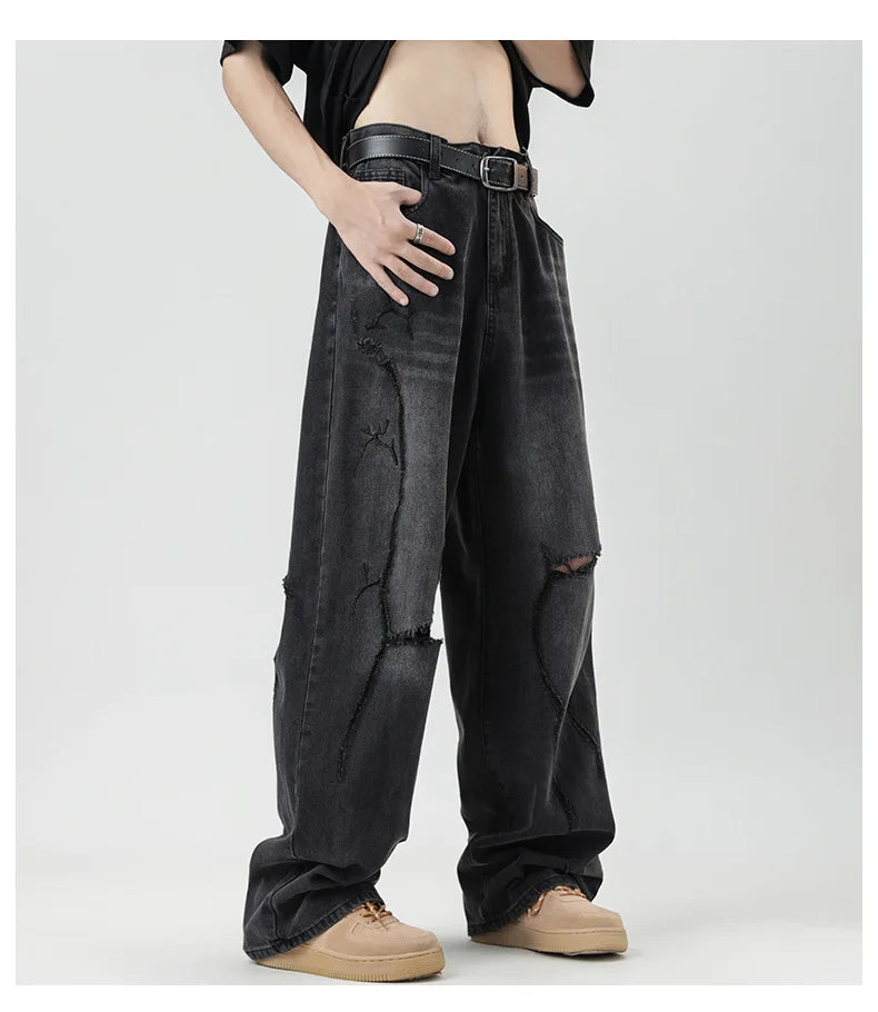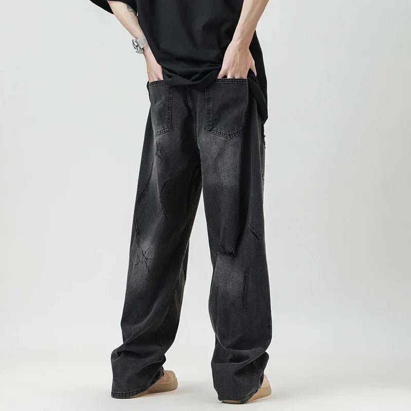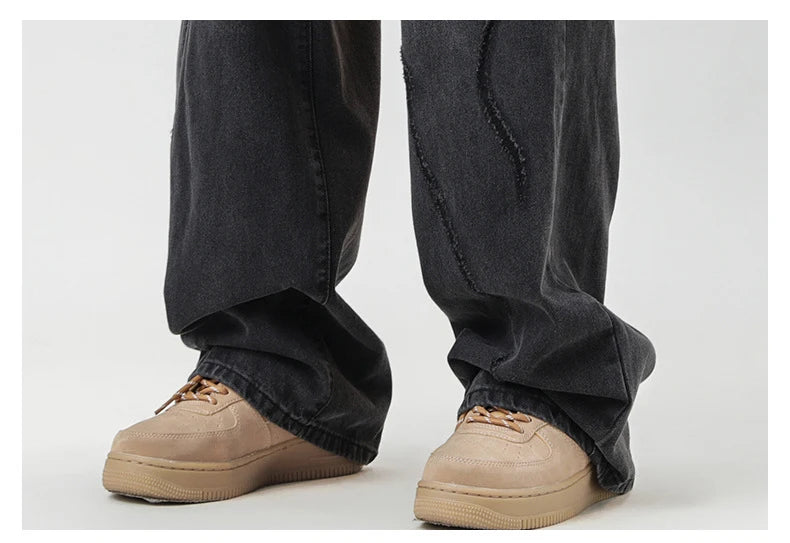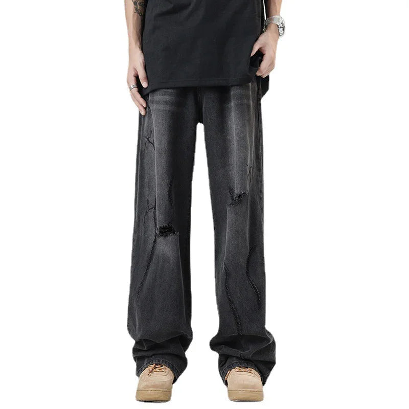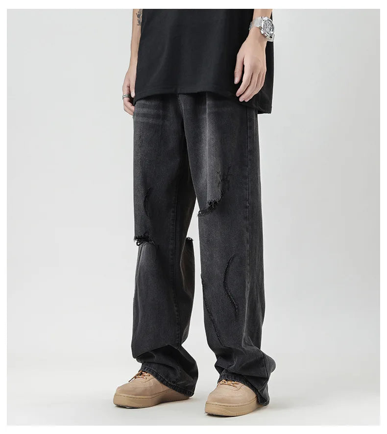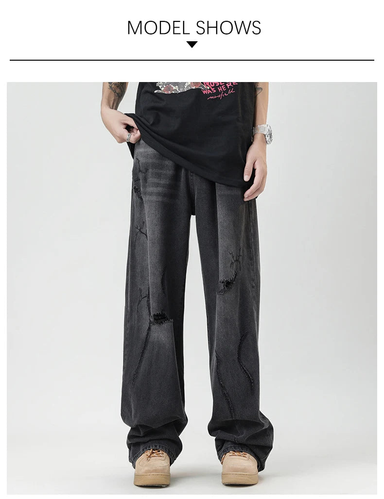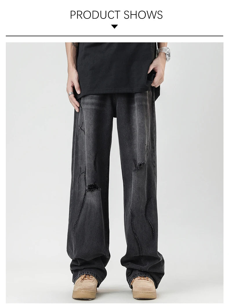 TFETTERS 2025 Summer New Ripped Jeans Men Vintage Mid Rise Straight Leg Designer Jeans Fashion Hip Hop Streetwear Men Clothing